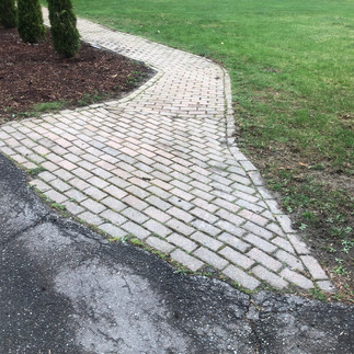 We had a client with an old unstable walk and wanted to change curb appeal and reduce the maintenance of mulch. This is the before above.